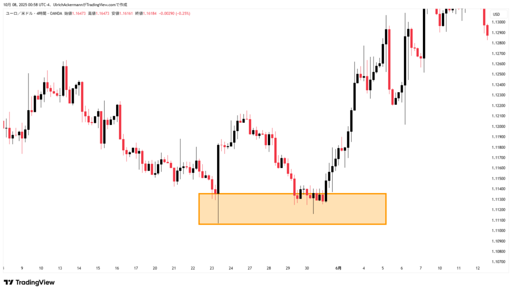 リクレイムド・オーダーブロックとは、一度は価格によって突破されて失効したかのように見えたオーダーブロックが、後に価格が戻ることで再び有効化され、サポートやレジスタンスとして機能するゾーンのことです。