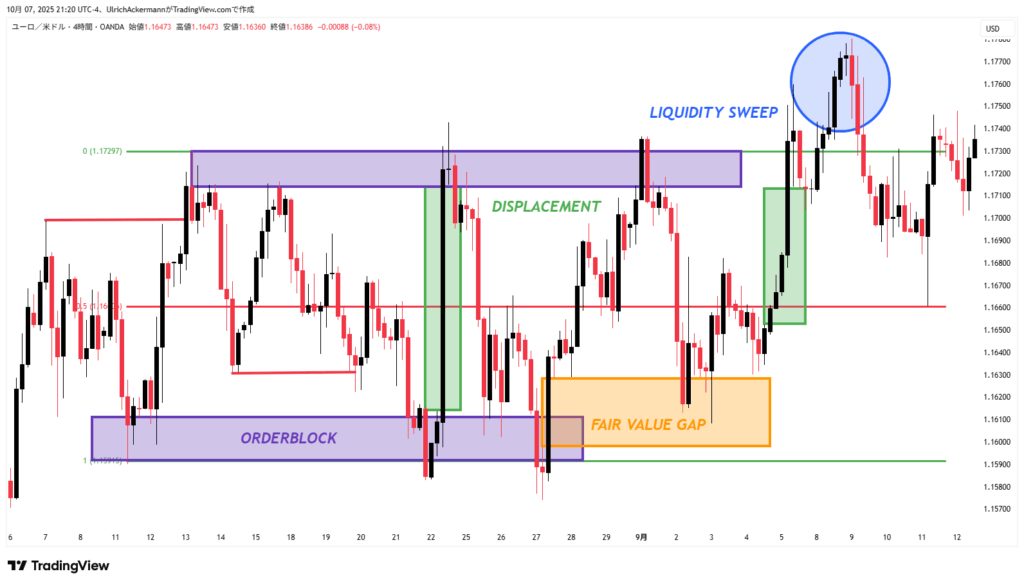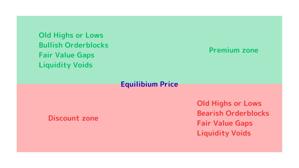 PD Array Matrix(Price Delivery Array Matrix) は、ICT理論において環境認識や価格の到達点を予測するために使われる重要なフレームワークのひとつです。これは価格が現在の割高な領域にあるのか、割安な領域にあるのかを判断するための仕組みであり、トレーダーが市場のバランスを視覚的かつ論理的に理解できるように設計されています。