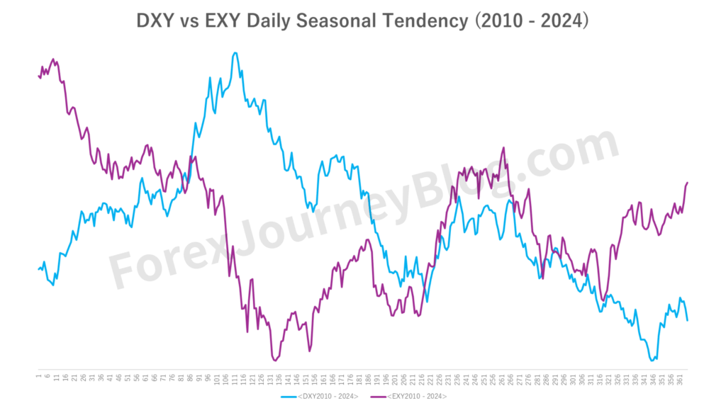 たとえば、米ドルは年末に強くなりやすい傾向がある一方で、ユーロは夏場に弱くなりやすい傾向があります。このような季節的な習性を把握しておくことで、スイングトレード や ポジショントレード において、相場の大きな流れを味方につけることができます。