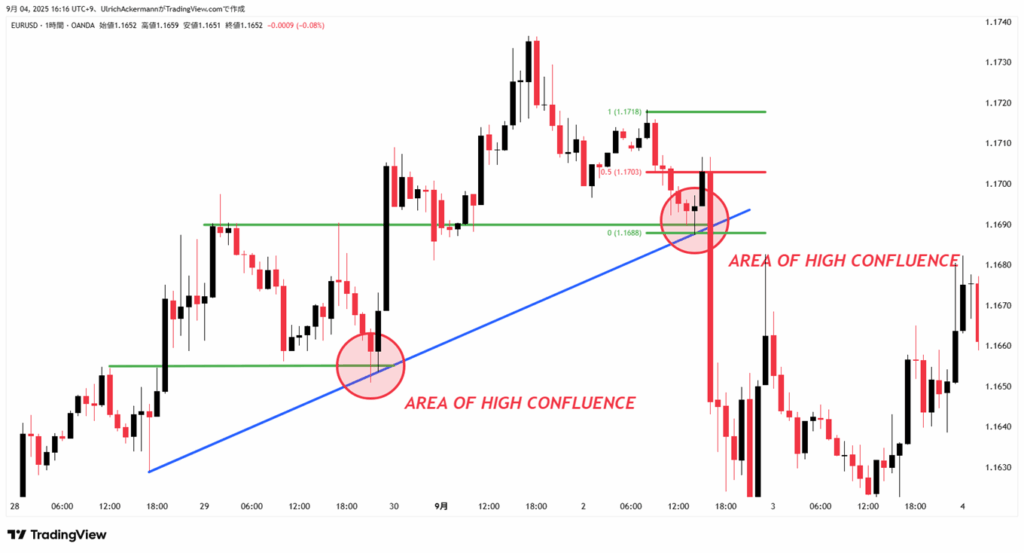 High Confluence とは複数の根拠が集中している場所という意味になります。